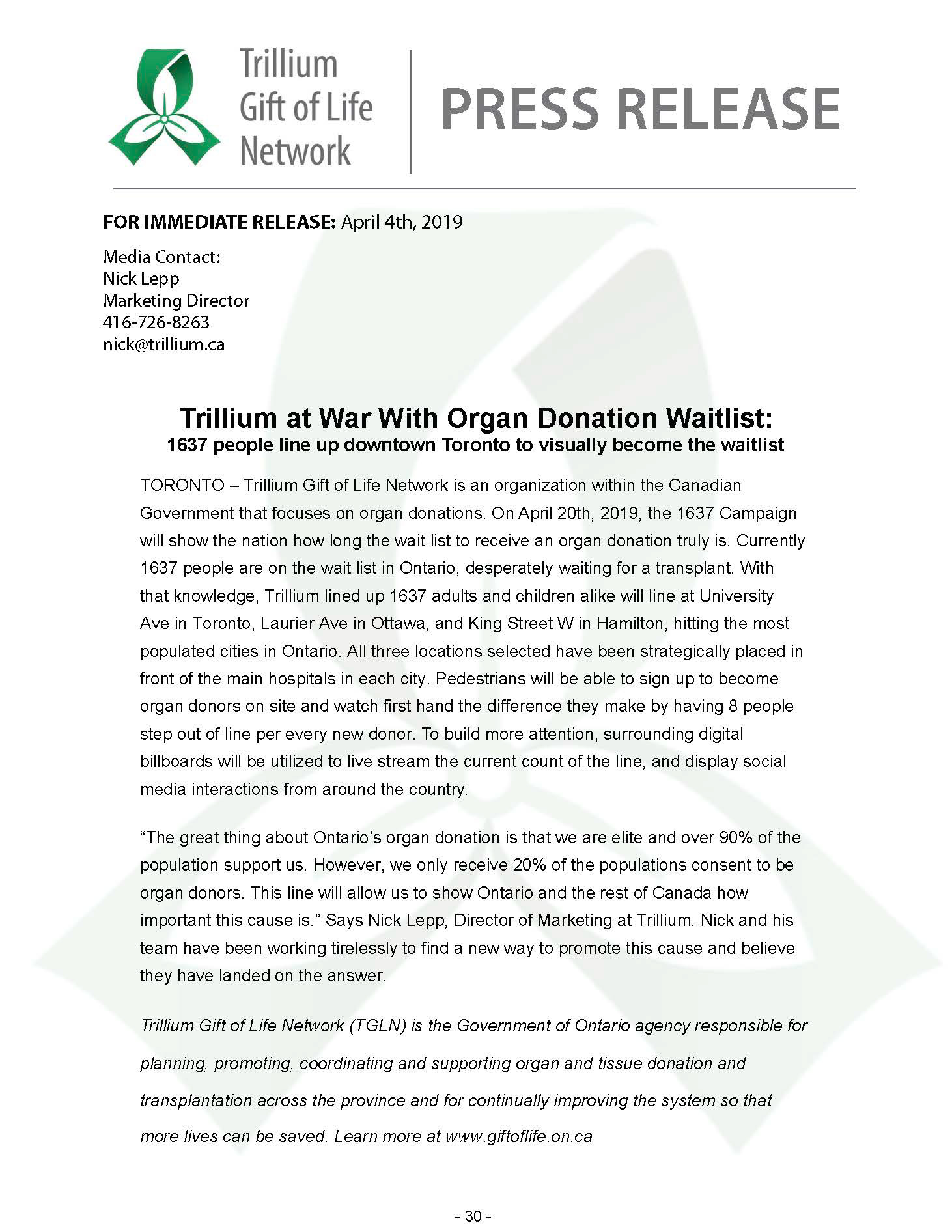 Trillium Press Release